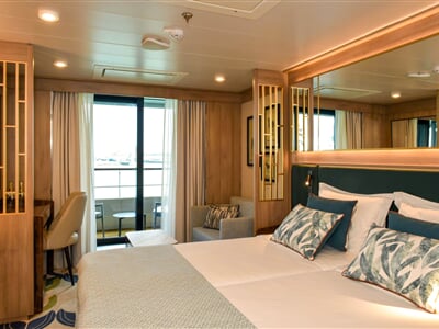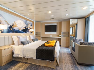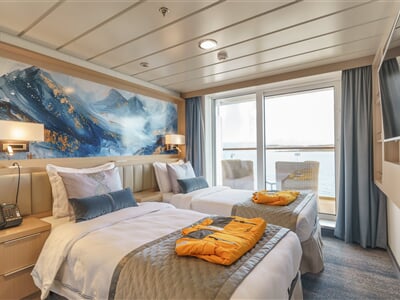 Prostorné kajuty mají moderní skandinávský design na míru a téměř všechny mají verandy. Hosté mohou relaxovat a najít pohodlí v prostorné posilovně, sauně s velkými okny a dvou venkovních vířivkách.
