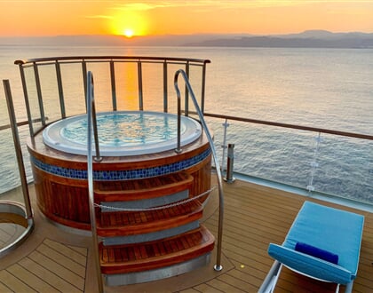 Prostorné kajuty mají moderní skandinávský design na míru a téměř všechny mají verandy. Hosté mohou relaxovat a najít pohodlí v prostorné posilovně, sauně s velkými okny a dvou venkovních vířivkách.