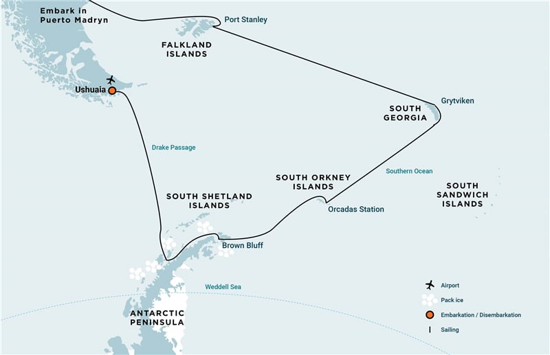 Přijíždíte a vystupujete v Ushuaia, která je obecně považována za nejjižnější město světa. Nachází se na souostroví Tierra del Fuego, přezdívaném „konec světa“. Ale i přes tuto zastávku vás bohatství vzpomínek, které jste si vytvořili na své antarktické expedici, bude provázet kamkoli se vydáte na své další dobrodružství.
